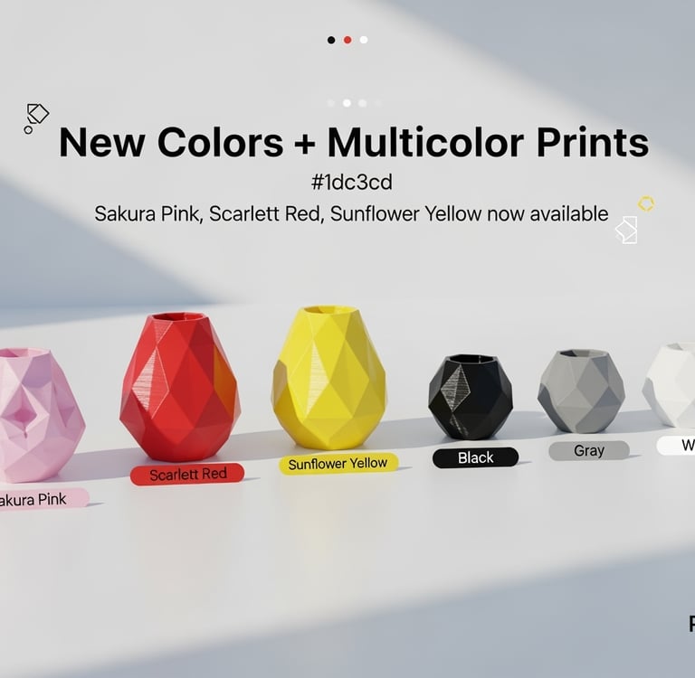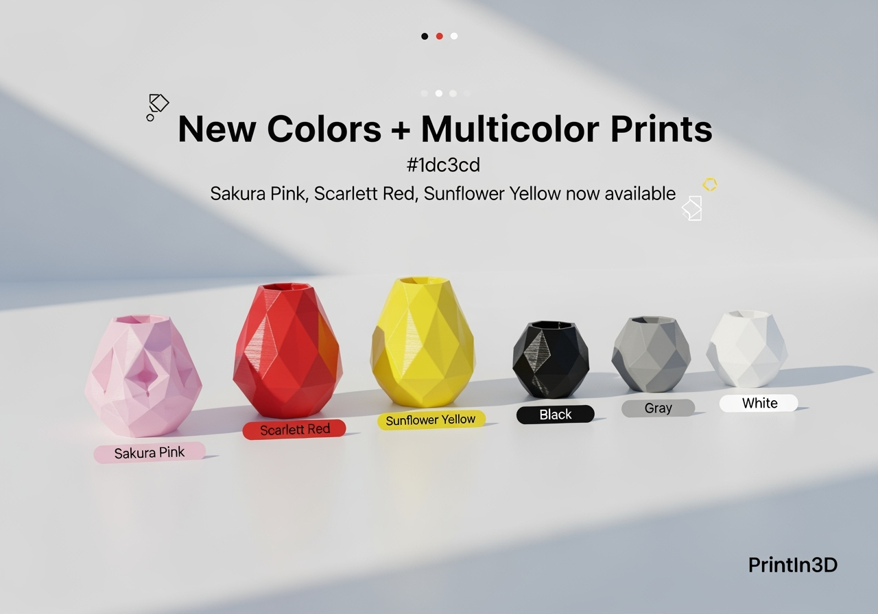 New Colors Are Here: Sakura Pink, Scarlett Red, Sunflower Yellow — Plus Multicolor Prints at PrintIn3D