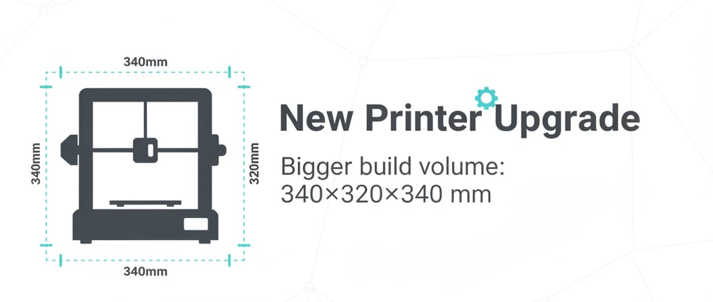 The biggest win is a larger build volume. This means we can now handle bigger parts in one piece, and for multi-part projects we can often reduce the number of splits—saving time and improving fit.